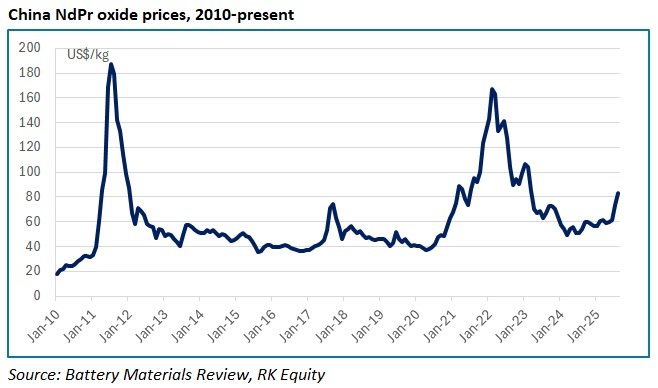 Because of the nature of the Rare Earth industry, where China controls a substantial percentage of production and has done for many years, profitability will be key for new Rare Earth development projects. You just have to look at the NdPr price over time to understand that. While there have been short periods where prices have broken out strongly, these have been dominated by extended periods of very weak pricing.