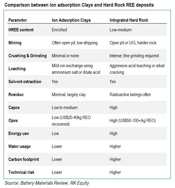 If I look at current hard rock projects under development, their NdPr equivalent grades come nowhere near the NdPr equivalent levels of the two mines in production. In addition, to develop most large-scale hard rock projects, you’re talking a substantial capital cost and relatively high opex as well. And, the REE basket that the mine is producing will include a lot of low-demand materials. As a result, there has been a considerable focus in the last 2-3 years in exploring and evaluating ion adsorption clay projects, of which there are some in parts of Africa and Brazil and other projects being evaluated for ion adsorption clay characteristics in Australia.