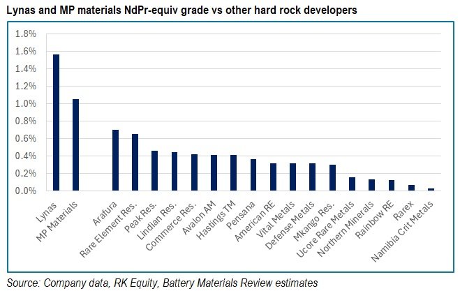 We talked about your average Hard Rock REE development project having an average NdPr-equiv grade of 0.33% vs the NdPr-equiv grades of Mountain Pass and Mount Weld at 1.05% and 1.56% respectively.
