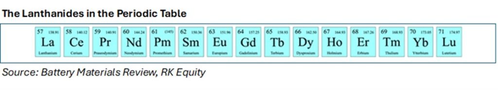 But, in general, when someone refers to Rare Earth Elements, they’re referring to the 15 elements described as lanthanides in the Periodic Table