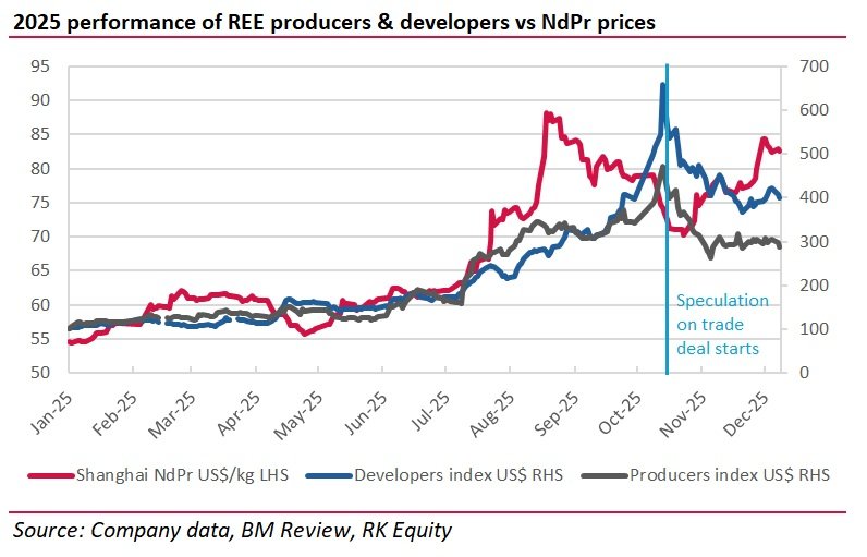 Stocks in our REE producers index: MP Materials, Lynas Rare Earths.