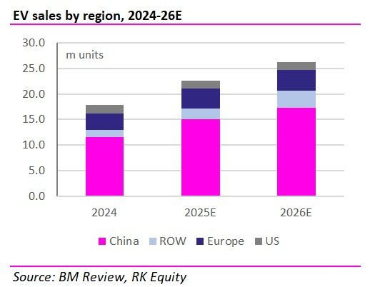 ROW is on track to sell over 2m EVs in 2025 and is growing at a 40+% per annum growth rate. And ESS installations are also growing extremely rapidly, buoyed by the Middle East, Latin America and Australia.