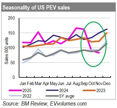 It took a little longer than I had expected for the weakness in US EV demand to emerge in 2025. I had it expected it by mid-year; it was actually only in the fourth quarter that it arrived. But 2026 now looks set to be quite a weak year for US EV sales.